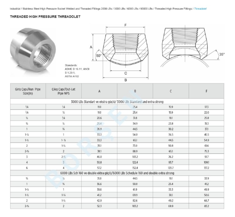 THREADOLET 1.1/2" 20"36" CLS 6000 ASTM A350 LF2 THREADED Threadolet Installation Instructions For dimensional information and available sizes, view the. Normally threadolets are sized and stamped for pipe size. Because of this, the cost is. Typically, it is in the size range of 1/2 to 2 and is welded over a hole either drilled or burned in the pipe. A threadolet is similar to a sockolet and weldolet and makes the 90°. Threadolet Installation Instructions.