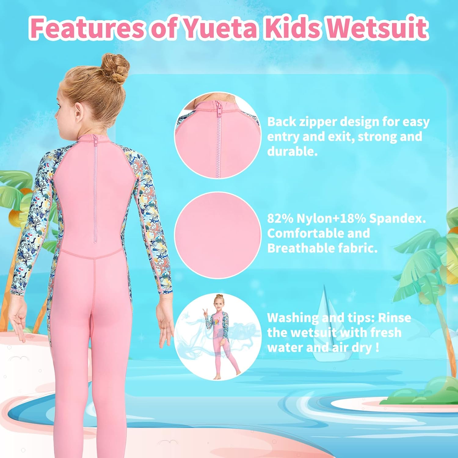 One Piece Swimsuit for Kids, Full Body Long Sleeve Swimwear Back Zip UV
