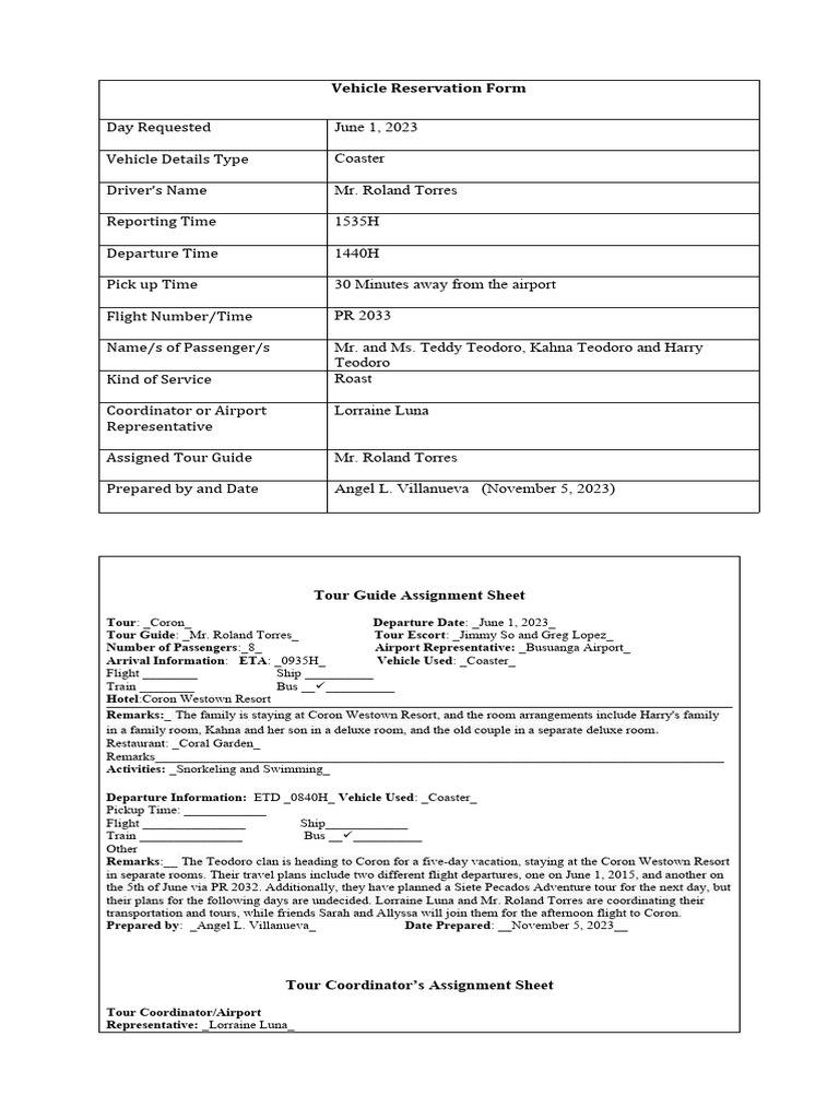 Tour Guide's Logbook PDF Public Transport Service Industries