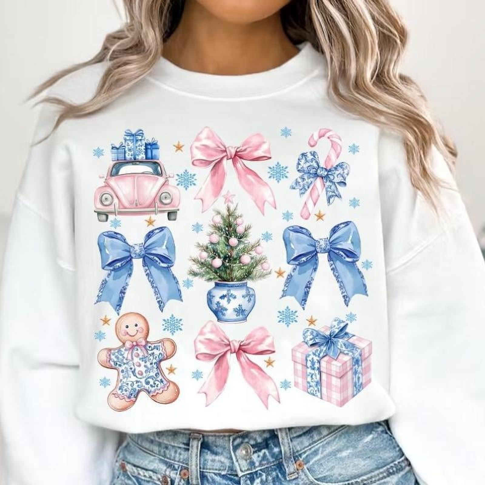 Coquette Chinoiserie Christmas Sweater. Pastel Christmas Toile . Blue