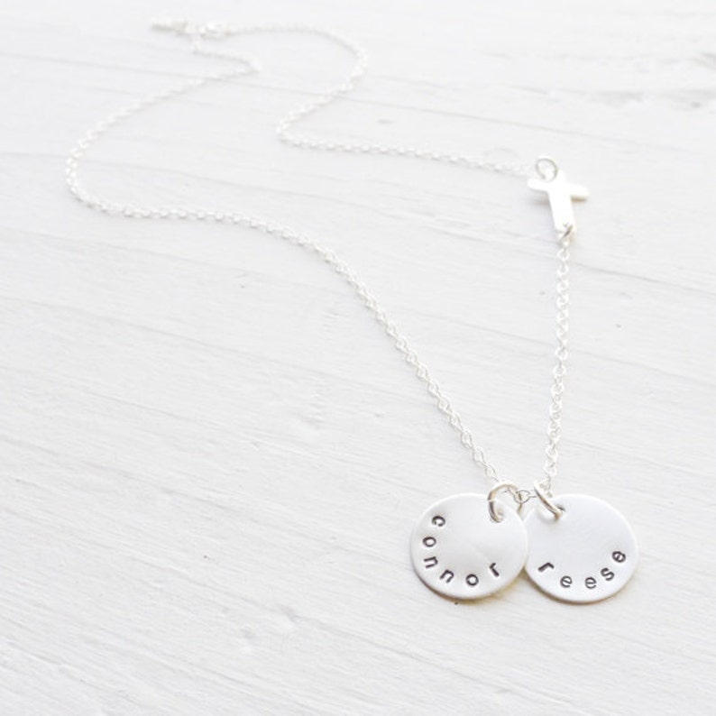 Sideways Cross Necklace Personalized Name Medallion Pendants Etsy