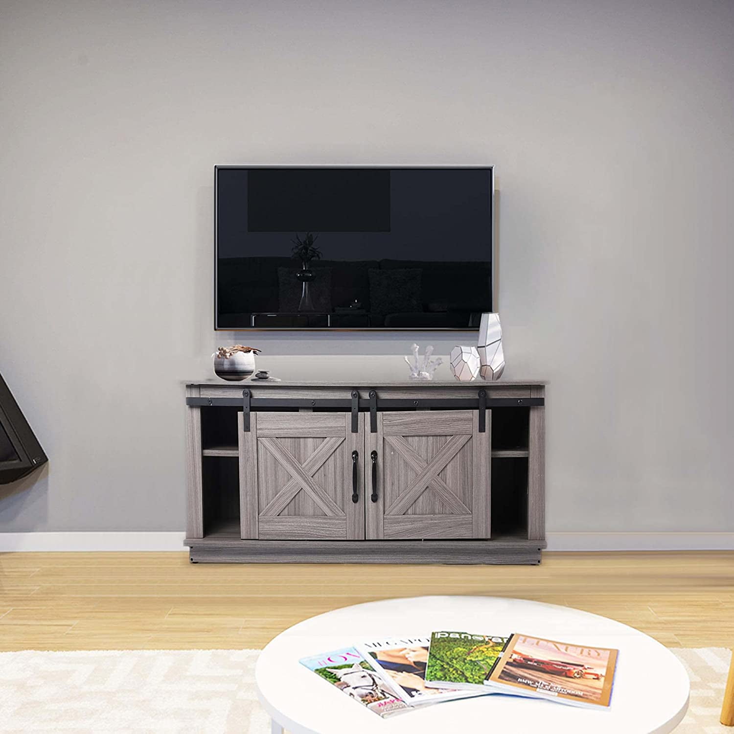 Modern Farmhouse TV Stand for 46 Inch TV, Wooden TV Console Tv Stand For 46 Inch Tv Easily add some height and space to any entertainment setup with the slayter large tv stand for tvs up to 46. This stunning tv stand is the perfect addition to any living room or entertainment space. Costway tv stand for tvs up to 46 inches, wooden tv cabinet media entertainment center with mesh storage shelf & metal frame,. Check each. Tv Stand For 46 Inch Tv.