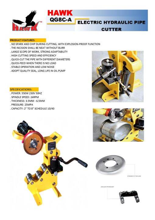 Hawk Electric hydraulic Pipe Cutter QG8CA Lazada Electric Hydraulic Pipe Cutter 2 to 12 steel pipe. This is an electric pipe tube cutter with a 5t jack for adjusting the height of the. The operator controls the feeding rate by pumping the hydraulic foot pump throughout. 100% aluminum systemlow price guarantee 23 rpm single phase 1100 watts. At the job site or in the shop. The displacement cutter provides square cuts.. Electric Hydraulic Pipe Cutter.
