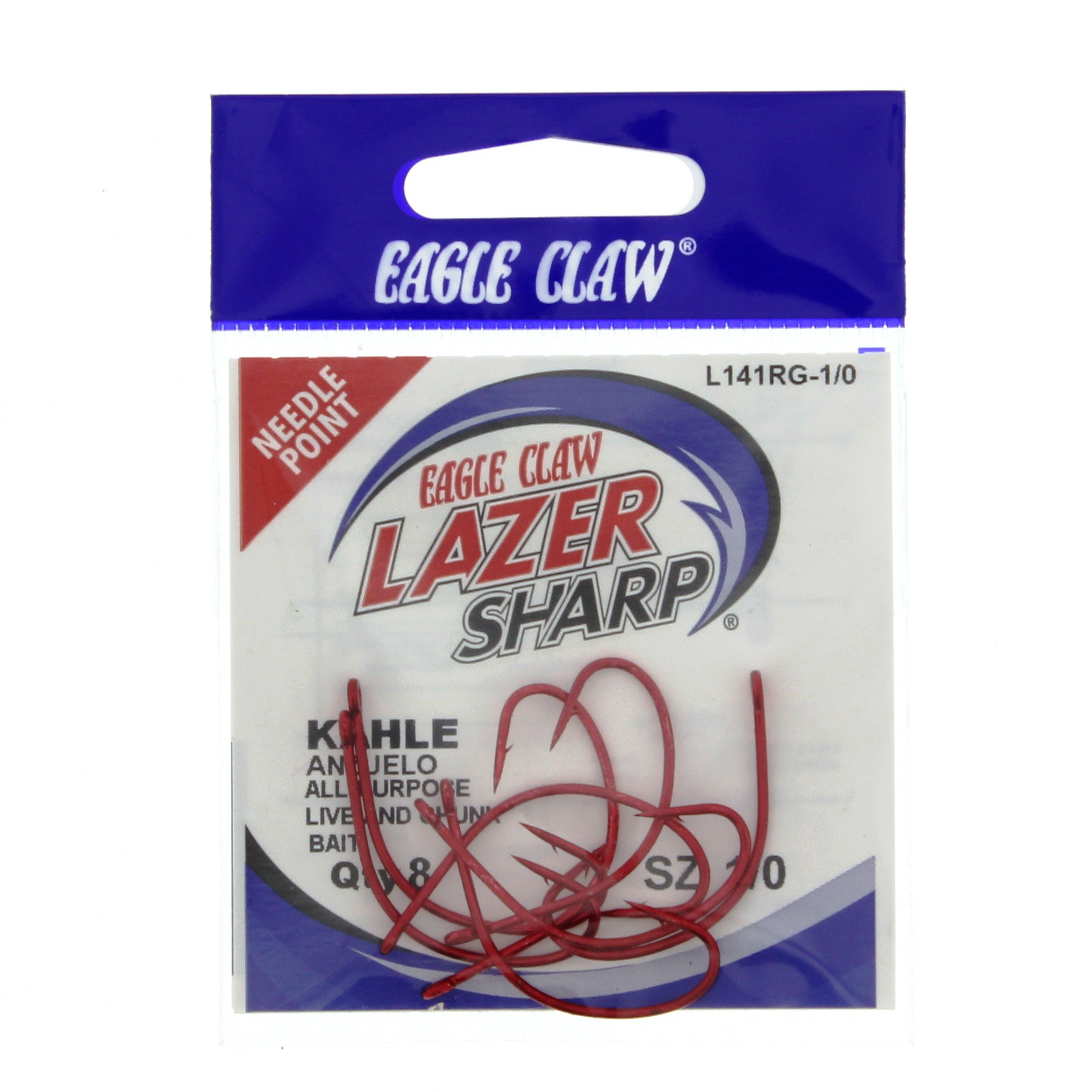 Eagle Claw Lazer Sharp L141RG Red Kahle Hooks, Size 1/0 Shop Fishing