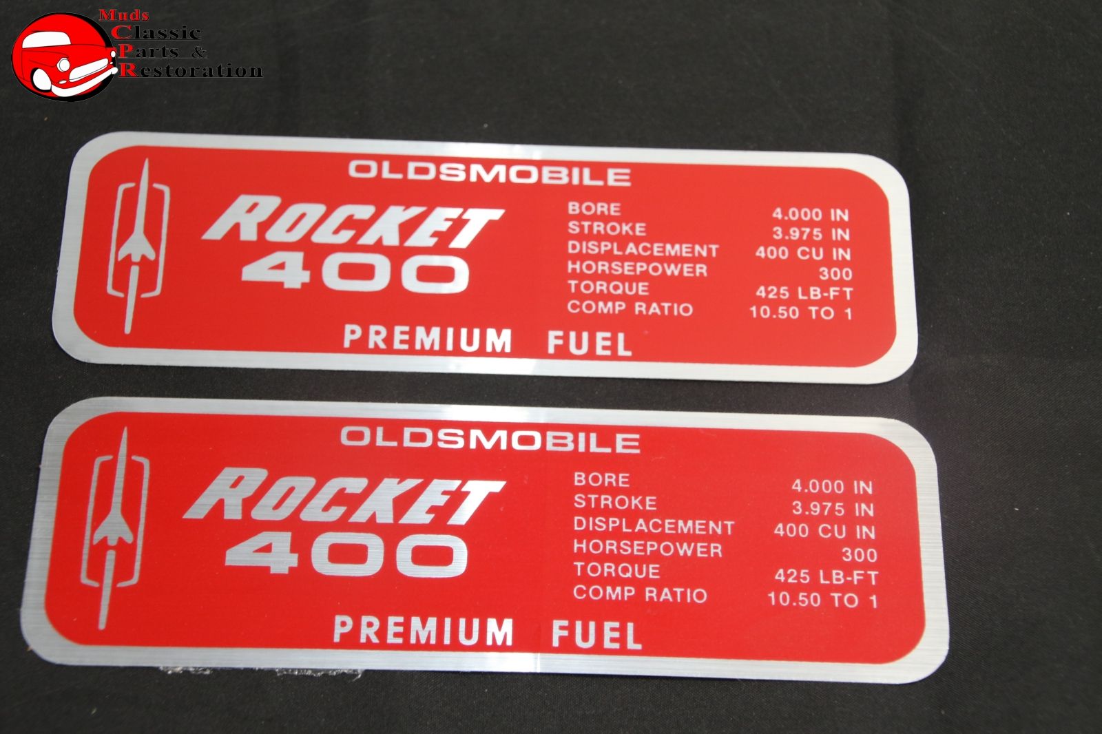 67 Oldsmobile Turnpike Cruiser 400 Valve Cover Decals Pair Muds