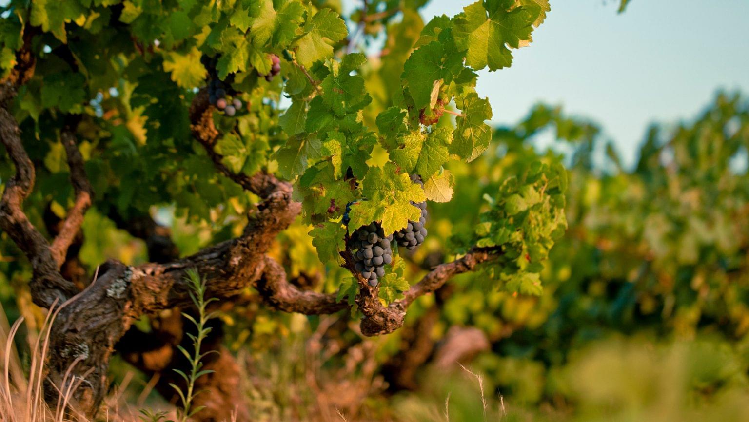 Red bunch of grapes in the vineyard, Alentejo region, Portugal — Stock Wine Grapes From Portugal In portugal, the majority of the wines produced are still based on the native grape varietals like: The vast quantity of native grape varieties (more than 250) allows the production of a great diversity of wines with very distinct personalities. Wines tend to be high in tannin and flavour; The skill of the winemaker is to keep fruit and freshness. Wine Grapes From Portugal.