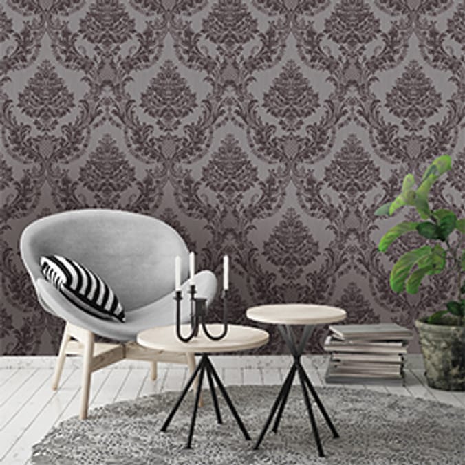 Statement Vinyl Wallcoverings Seleina Damask Grey Holden wallpaper