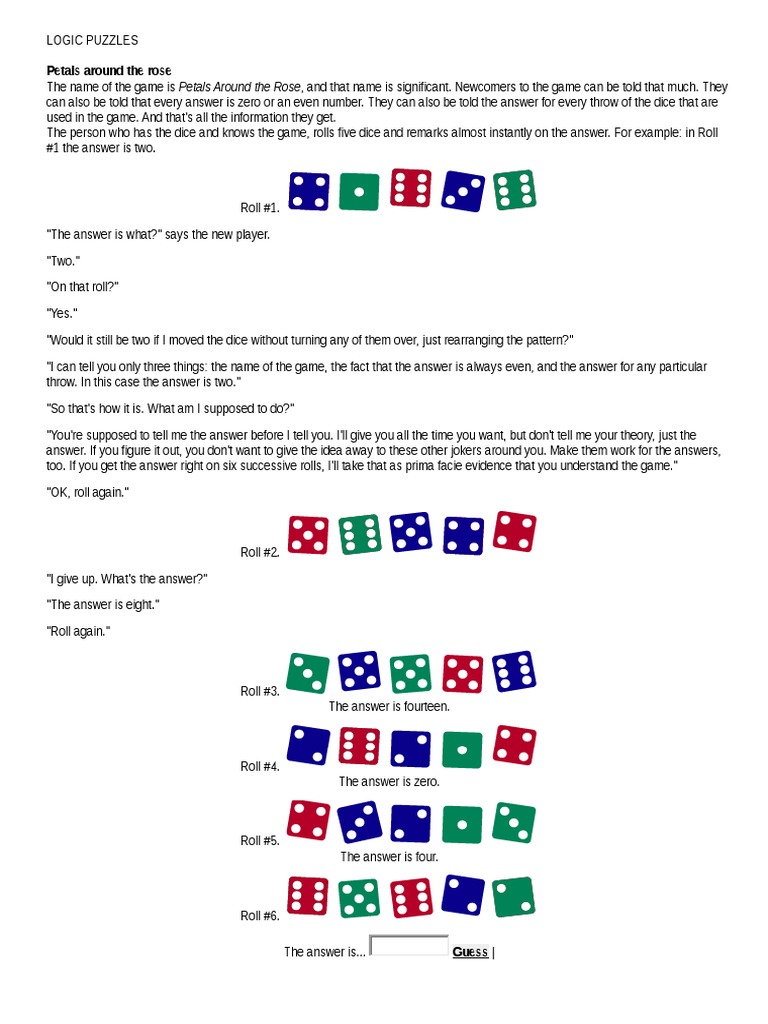 LOGIC PUZZLES (Petals Around The Rose & Others) PDF Dice Games Of