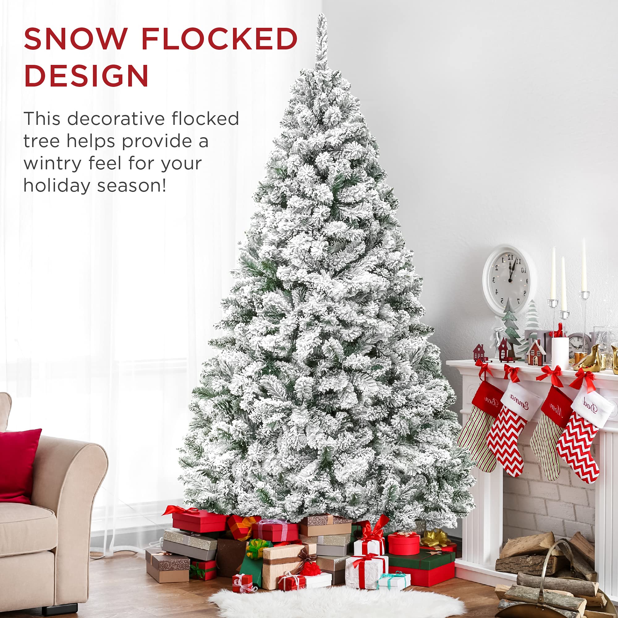 Best Choice Products 9ft Premium Snow Flocked Artificial Holiday Christmas Pine Tree for Home