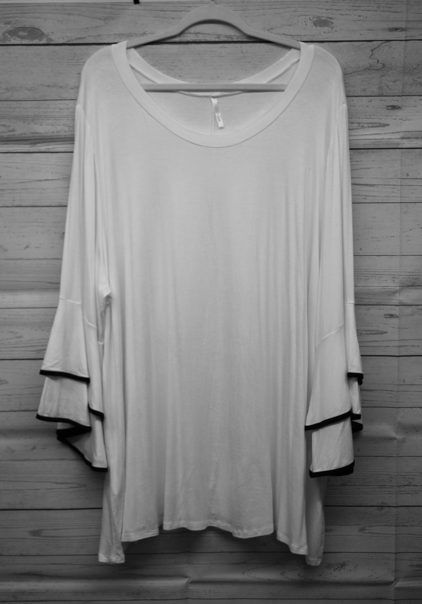 PSFU White w Black Piping Trim Top Plus Size For Us
