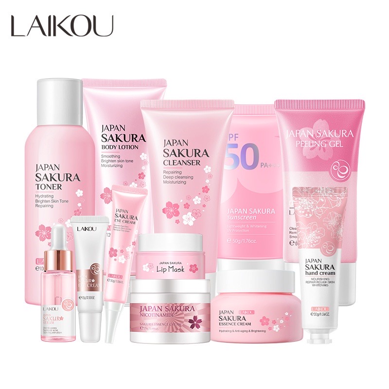 LAIKOU Japan Sakura Skin Care Set Whitening Serum Essence Cream Facial