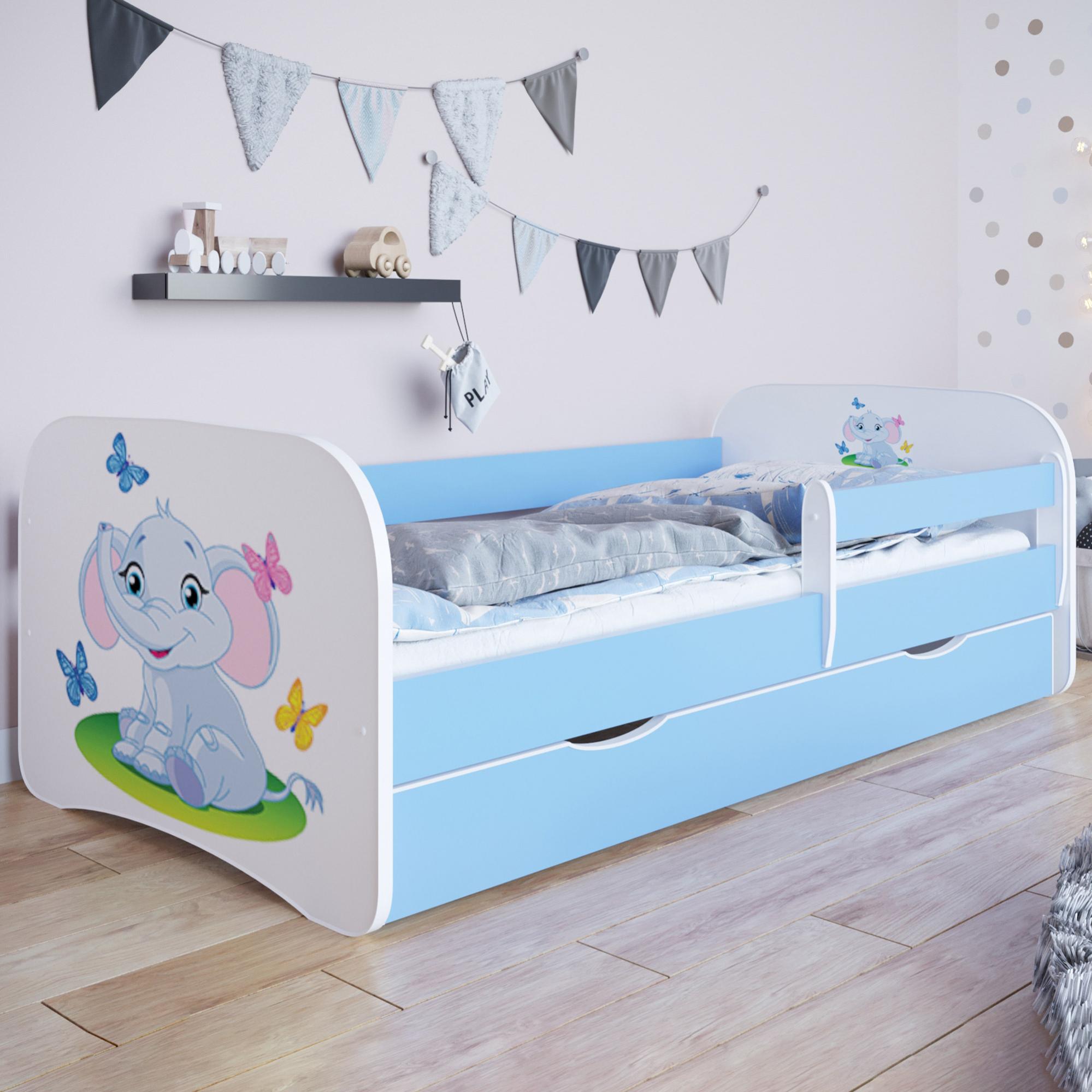 Lit 70x140 cm bleu avec tiroir décor éléphant HEROS Leroy Merlin