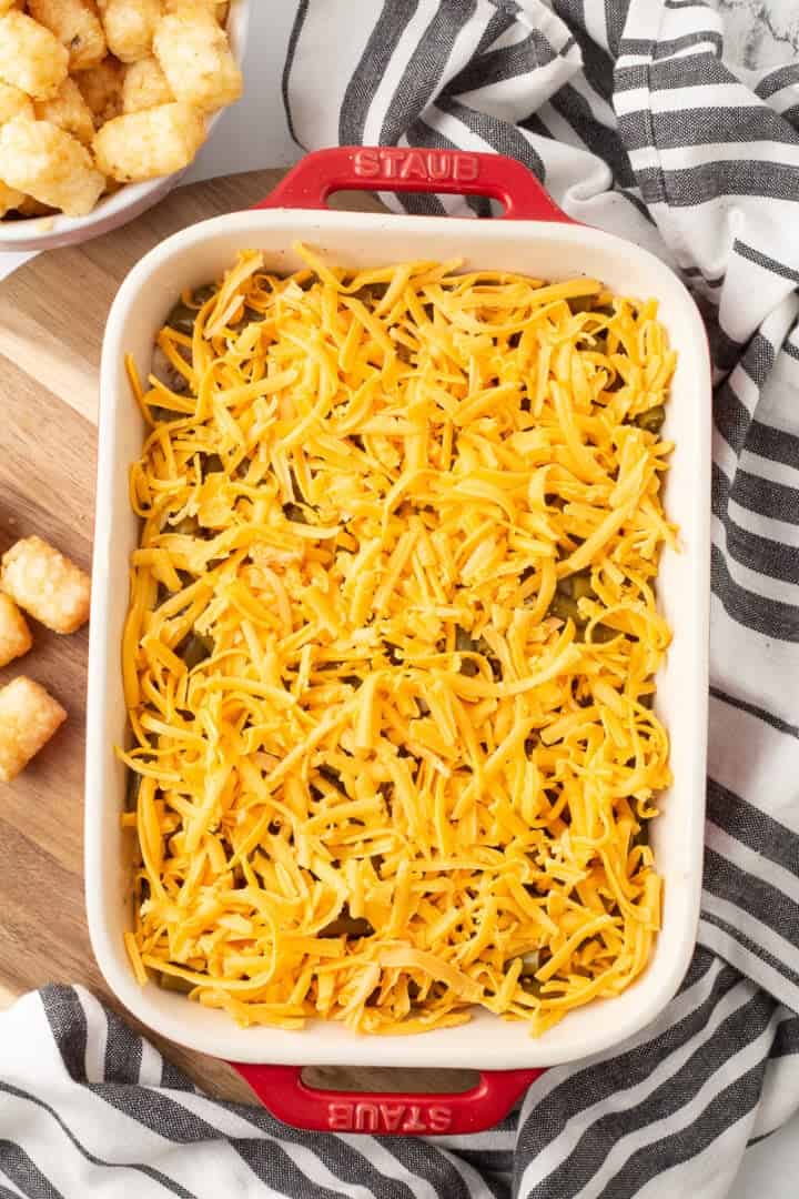The BEST Green Bean Tater Tot Casserole (with Ground Beef) She's Not Ground Beef Green Bean Tater Tot Casserole Learn how to make a delicious and easy tater tot casserole with ground beef, green beans, cheese and cream of mushroom soup. Preheat oven to 375°f and bake for 25 to 30 minutes. The casserole is assembled in layers, starting with the ground beef, followed by the cream of mushroom soup, then the green. This easy and family friendly recipe. Ground Beef Green Bean Tater Tot Casserole.