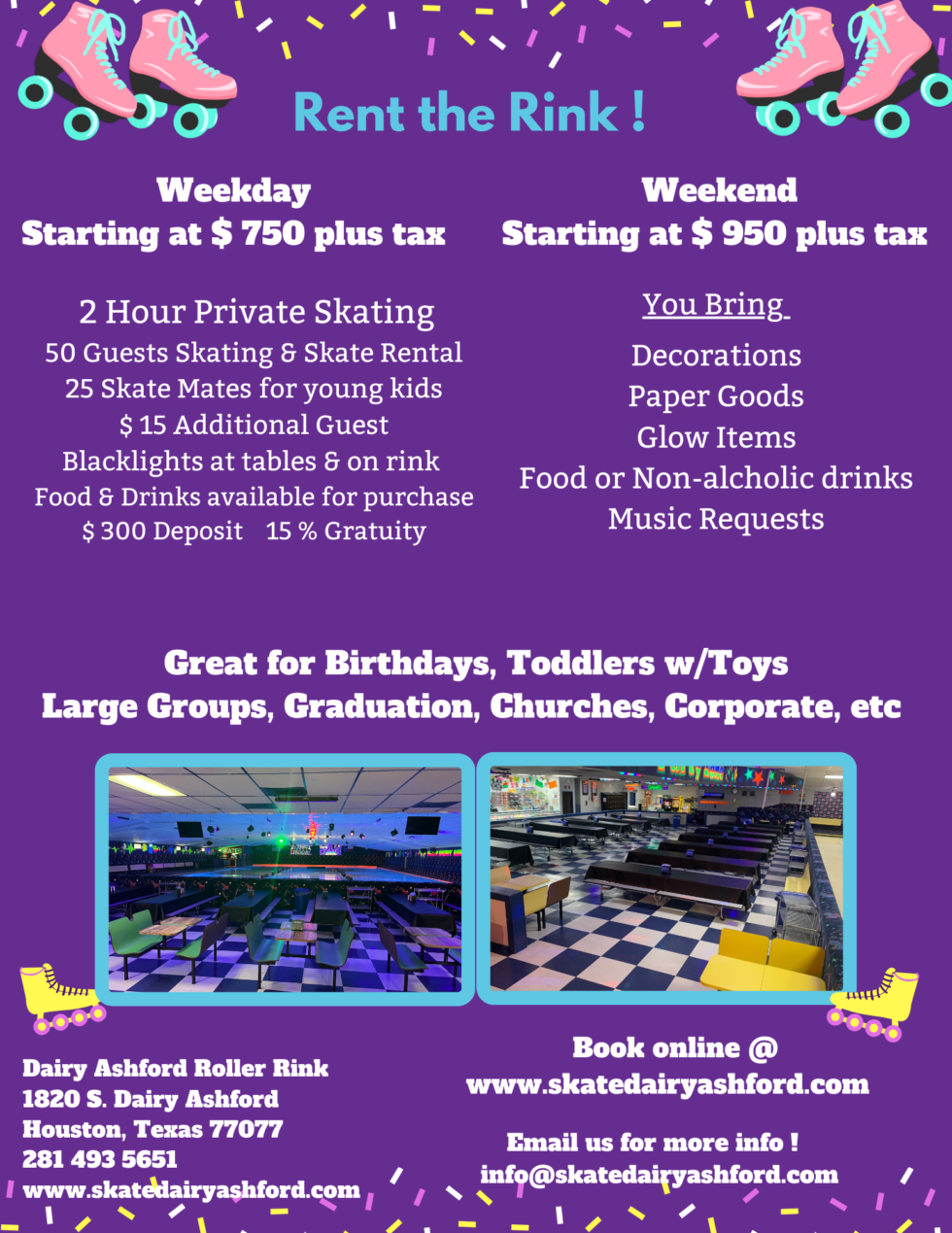 Dairy Ashford Roller Rink Photos see all 63 photos taken at dairy ashford roller rink by 1,253 visitors. see all 63 photos taken at dairy ashford roller rink by 1,253 visitors. dairy ashford roller rink, 1820 s dairy ashford rd,. Hours updated 3 weeks ago. dairy ashford roller rink (@skatedairyashford) • instagram photos and videos. 3.2 (129 reviews) claimed. Skating rinks, party & event planning. dairy ashford roller rink, 1820 s dairy ashford rd, houston, tx ️ 124 photos ️ 129 reviews ️ phone number ️ hours dairy ashford roller rink is the ultimate destination for roller skating fun in houston, texas. 6,151 likes · 17 talking. the official dairy ashford roller rink, houston, texas.