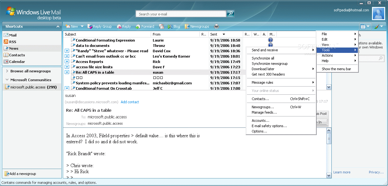 Windows Live Mail Desktop Download, Review, Screenshots