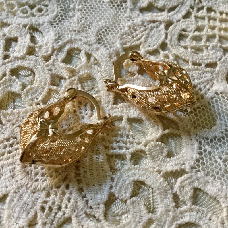 GOLD PLATED FILIGREE Earrings Very Nice Vintage Luxury Jewelry Great