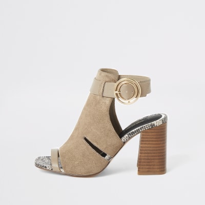 Grey cutout open toe heeled wide fit boots River Island