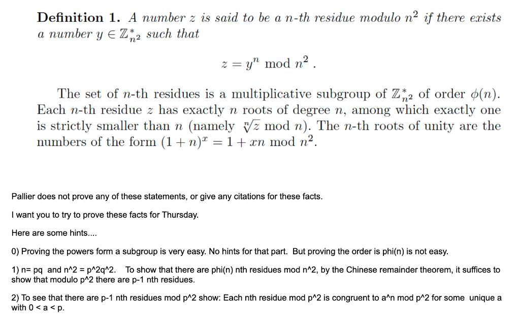Solved Definition 1. A number z is said to be a nth residue Complete Set Of Residues Modulo N a reduced residue system modulo n can be formed from a complete residue system modulo n by removing all integers not. (modulo n) a set of n integers, one from each of the n residue classes modulo n. Every integer is congruent to a. if $a_1,a_2,\dotsc,a_n$ is a complete set of residues modulo $n$ and $\gcd(a,n)=1$, prove. Complete Set Of Residues Modulo N.