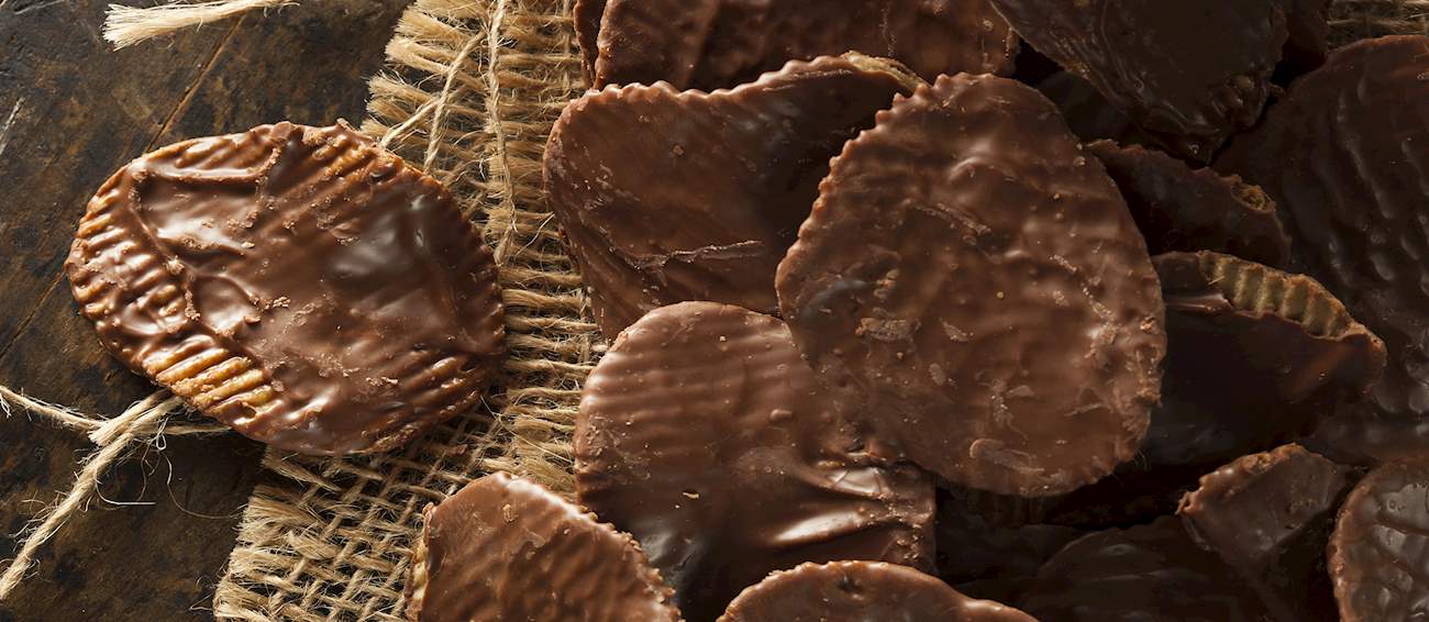 Chocolate Covered Potato Chips Traditional Snack From North Dakota, United States of America