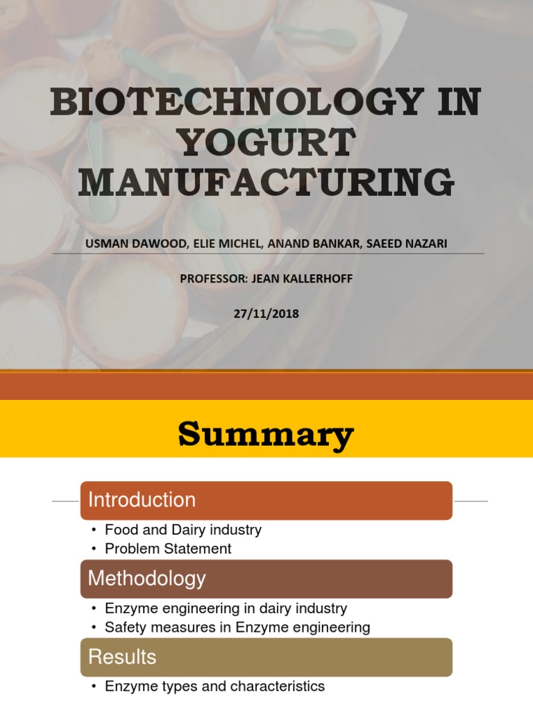 Biotechnology in Yogurt Manufacturing PDF Enzyme Yogurt