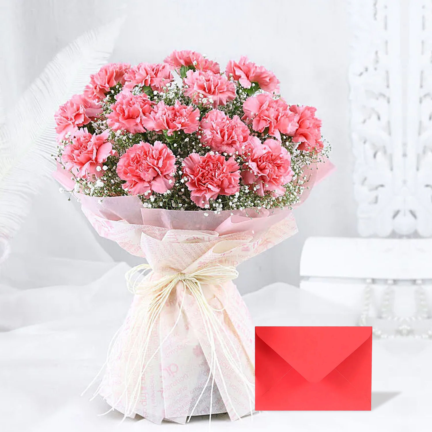 Pink Carnation Elegance Bouquet with Greeting Card Delivery in