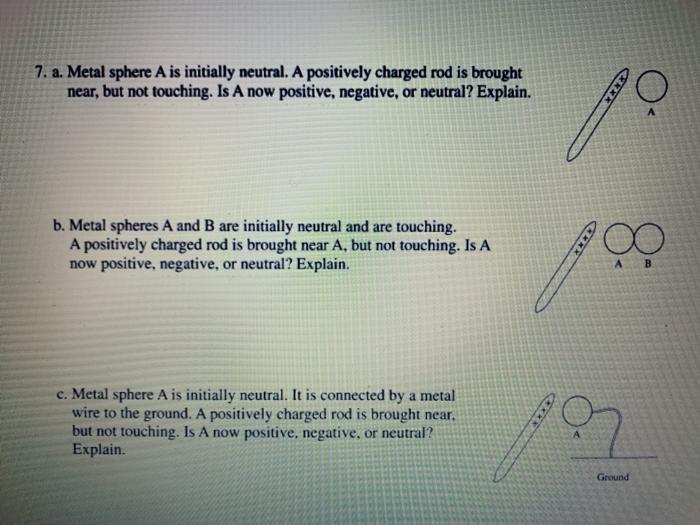 Solved 7. a. Metal sphere A is initially neutral. A