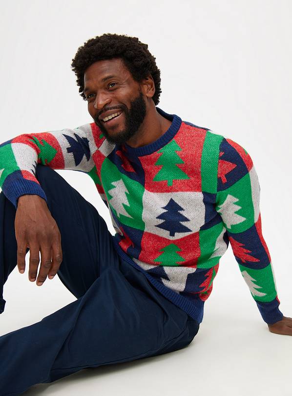 Buy Checkerboard Christmas Tree Print Knitted Jumper L Jumpers and