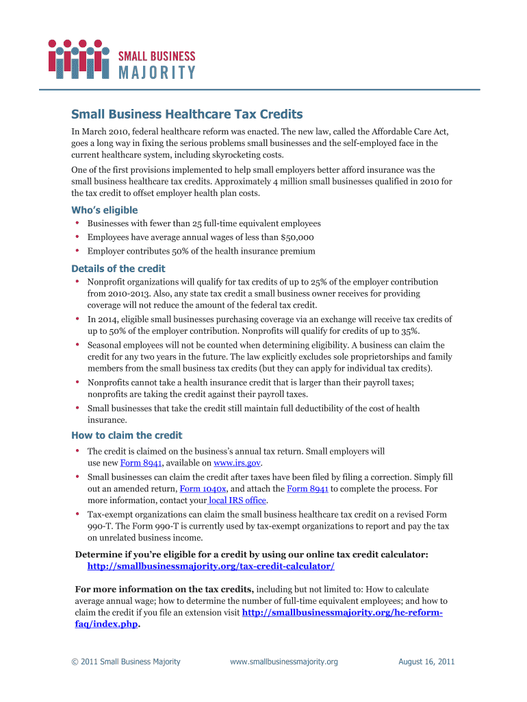 Fillable Online Small Business Healthcare Tax Credits