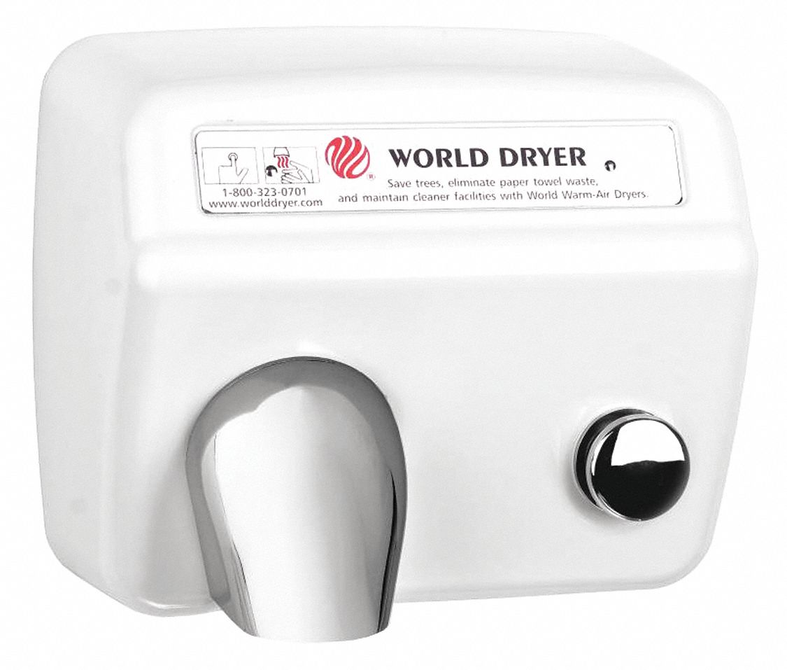 WORLD DRYER, Push Button, 30 sec Dry Time, Hand Dryer 56EE52DA5