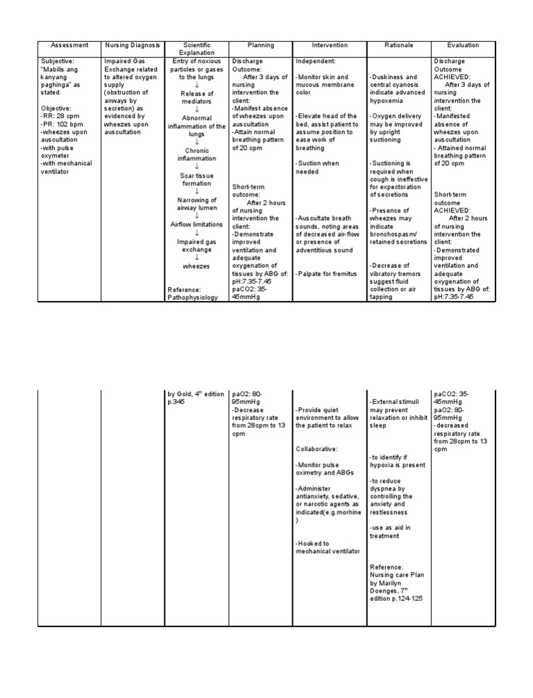 NCP ImpairedGasExchange CUES NURSING DIAGNOSIS SCIENTIFIC RATIONALE OBJECTIVES NURSING Studocu Abg Values For Impaired Gas Exchange In the pathological state, where gas exchange is impaired, the difference between the paco2 and petco2 becomes greater than 3 mmhg due to increased dead space. The radial artery is usually used. By understanding the underlying causes, recognizing key signs and. A more specific measurement of oxygen and carbon dioxide in the blood is obtained using an arterial blood gas. Abg Values For Impaired Gas Exchange.