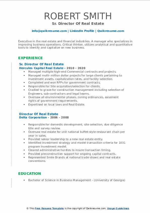Director Of Real Estate Resume Samples QwikResume