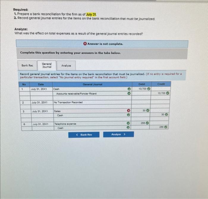 Solved Requlred 1. Prepare a bank reconclilation for the