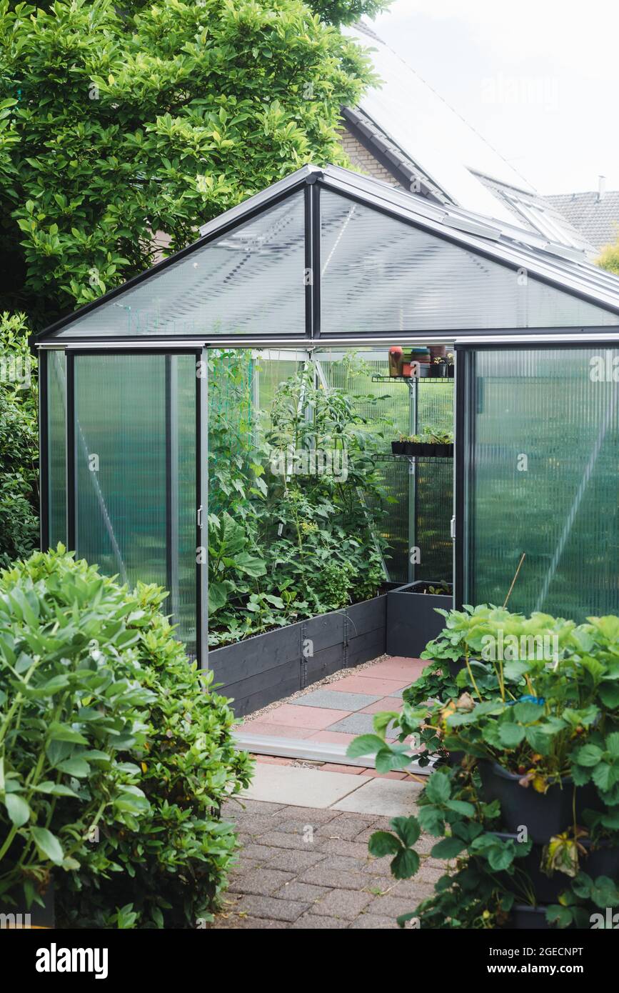 Greenhouse in the garden Stock Photo Alamy