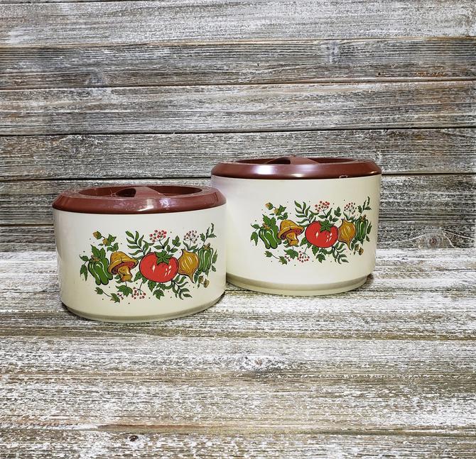 Vintage 1970s Kitchen Canisters, Mushroom, Onion, Peppers, Tomato