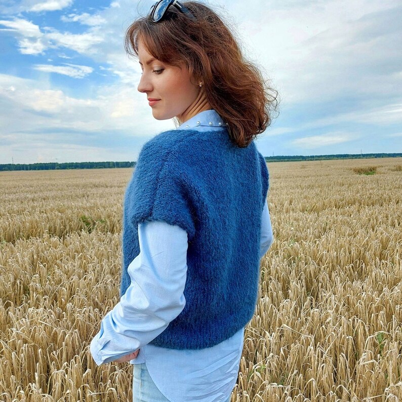 Blue Hand Knitted Sweater Vest. Fashion Oversized Knit Womens Etsy