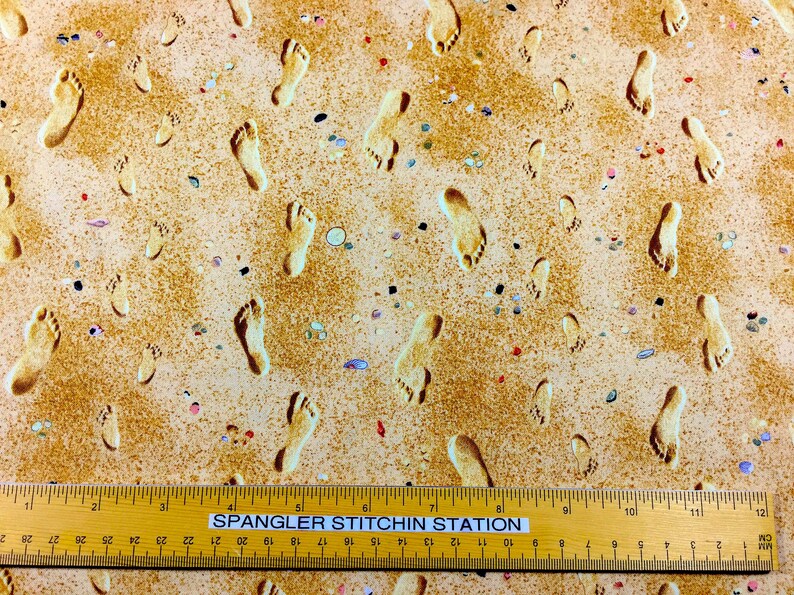 Landscape Medley Footprints in the Sand Fabric by QuiltsOnTheFly Footprints In The Sand Fabric Design includes a footprint saying walking through the sand. Footprints in the sand 100% cotton patchwork fabric for craft and quilt projects. Fat quarter 50cm x 55cm. You can choose from 3 lengths. 100% cotton footprints in the sand fabric. The design is called footprints in the sand. Free uk delivery when you spend over £30 on our website! A. Footprints In The Sand Fabric.