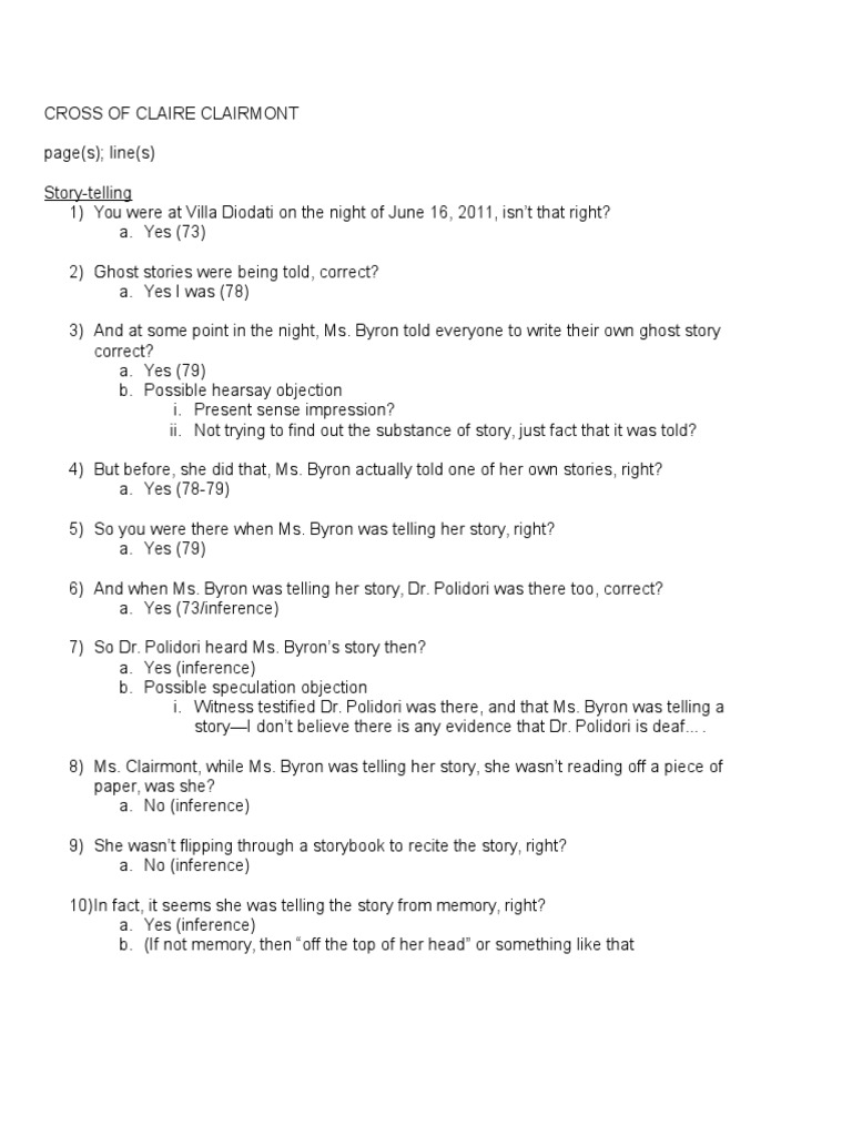 Cross Examination Example Lord Byron Mary Shelley