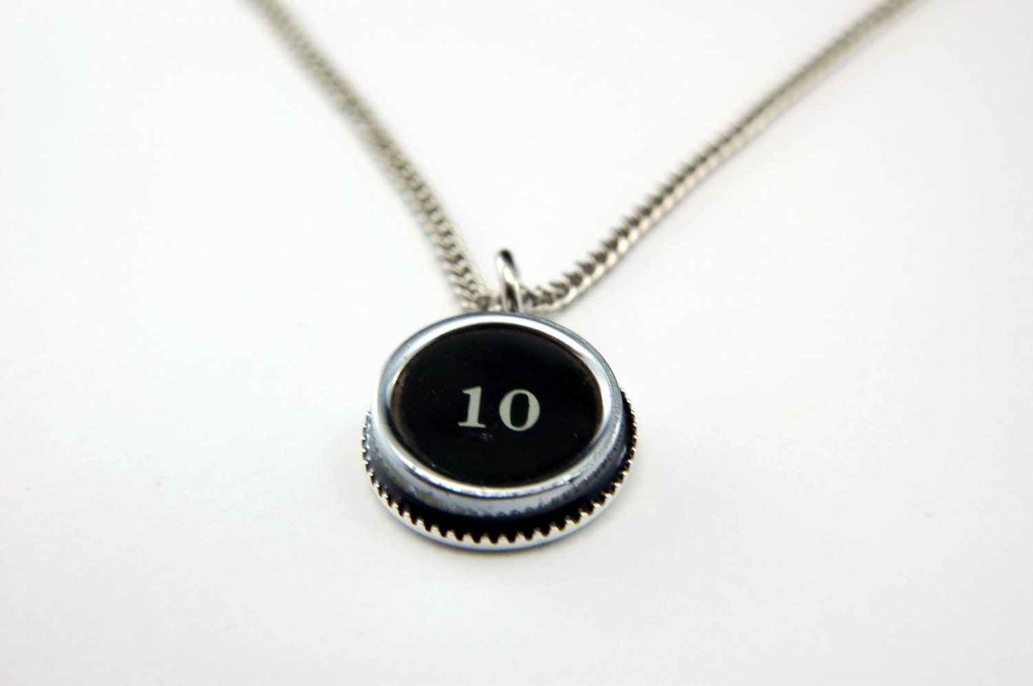 NUMBER 10 Vintage Typewriter Key Pendant Necklace Charm