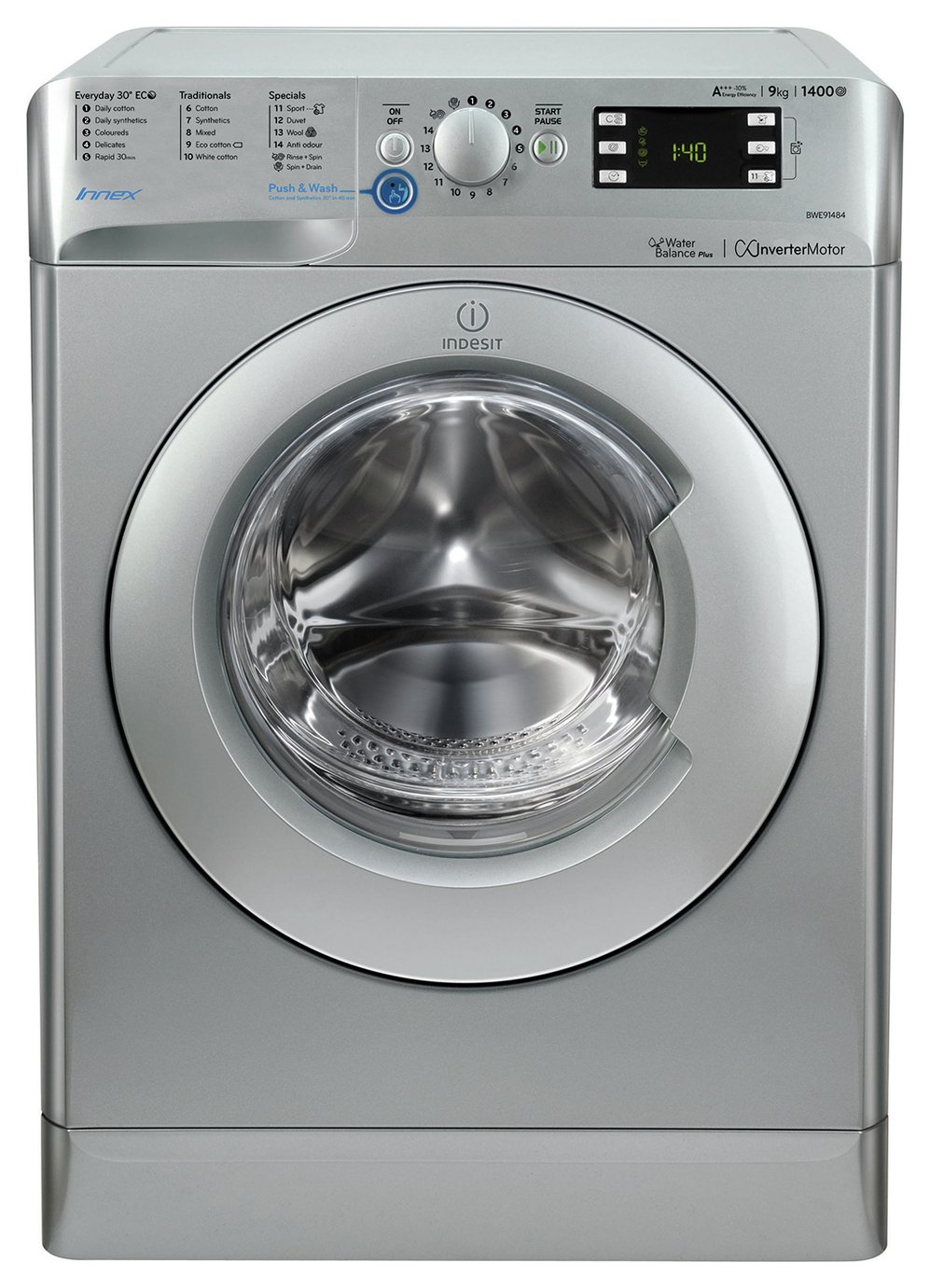Indesit BWE91484X 9KG 1400 Spin Washing Machine Silver (6558491