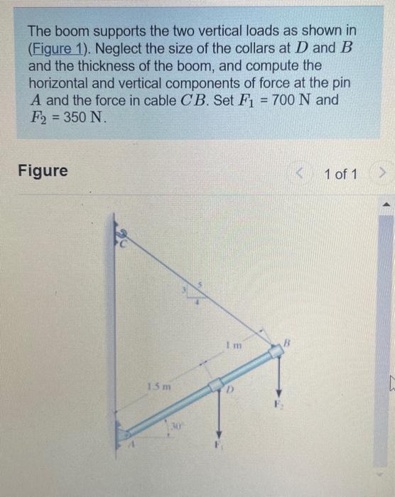 Solved The boom supports the two vertical loads as shown in