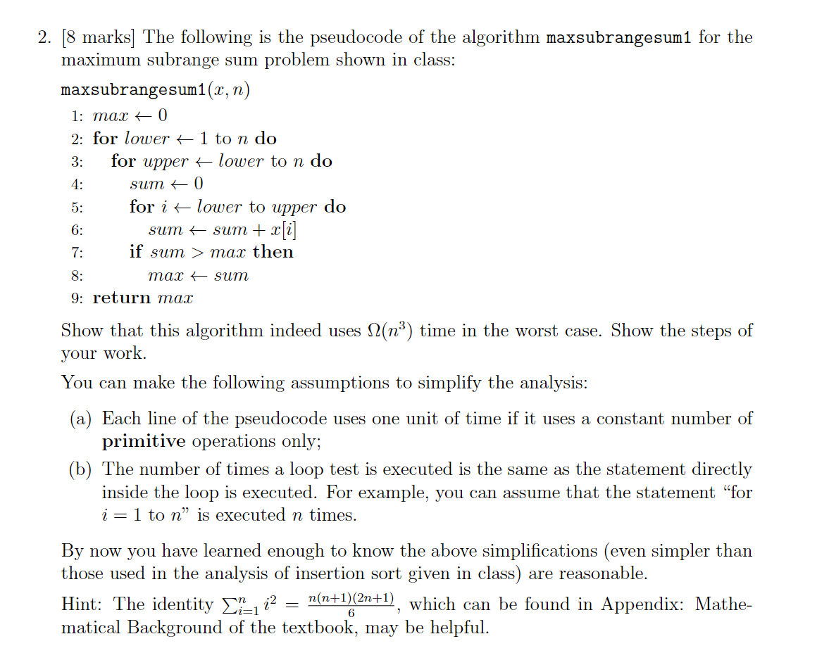 Solved [8 marks] The following is the pseudocode of the