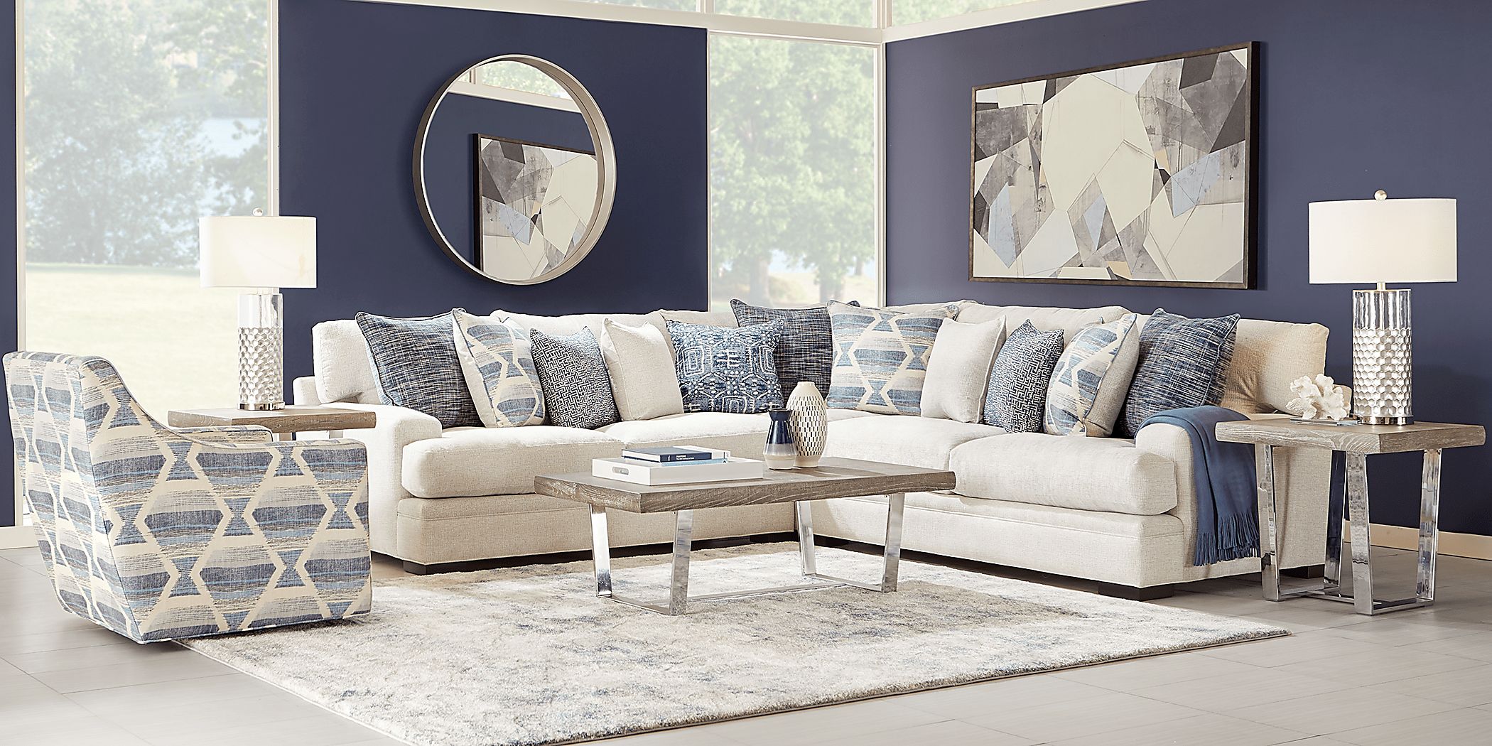 Cindy Crawford Home Bedford Park Ivory 3 Pc Sectional Rooms To Go