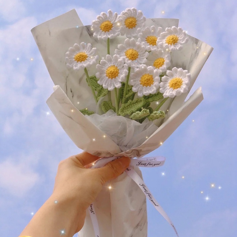Hand Knitted Artificial Flower Diy Yarn Knitted Bouquet Fake Flower