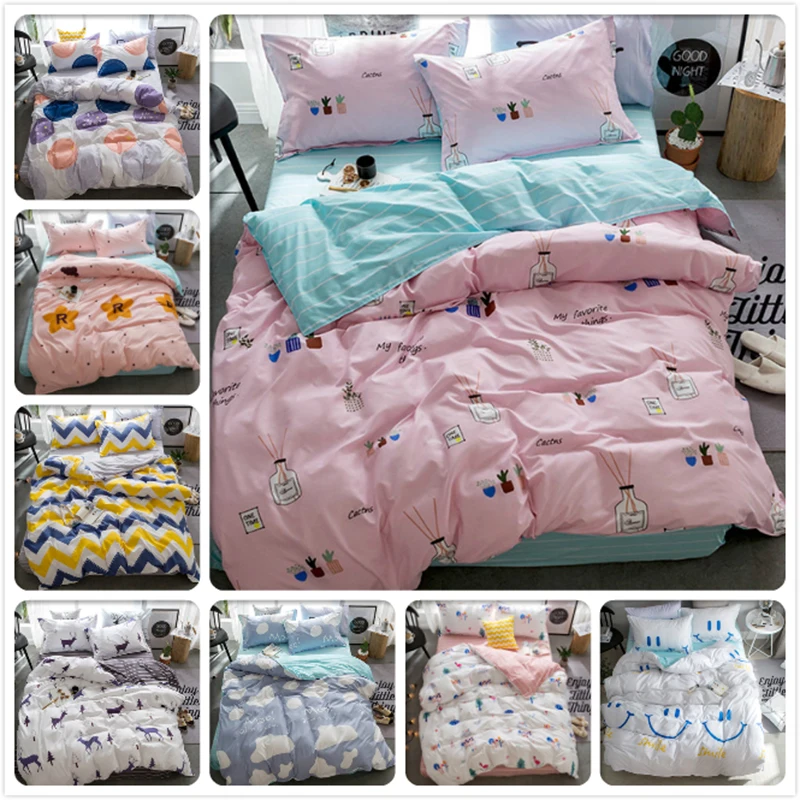Soft Cotton Kids Bedding Set 3pcs/4pcs Bed Linen Single Twin Queen King Size Duvet Cover 1.2m 1