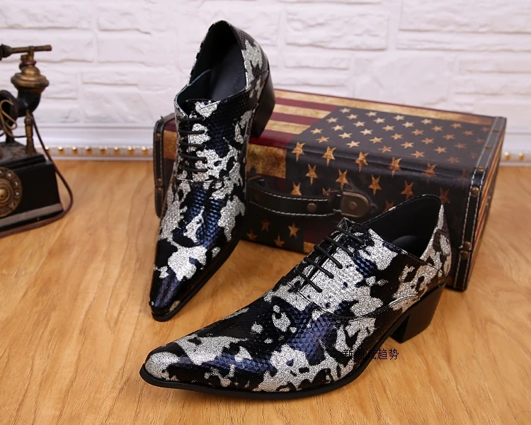 Korean Style Lace up Men Dress Shoes Floral Print Men Shoes Leather