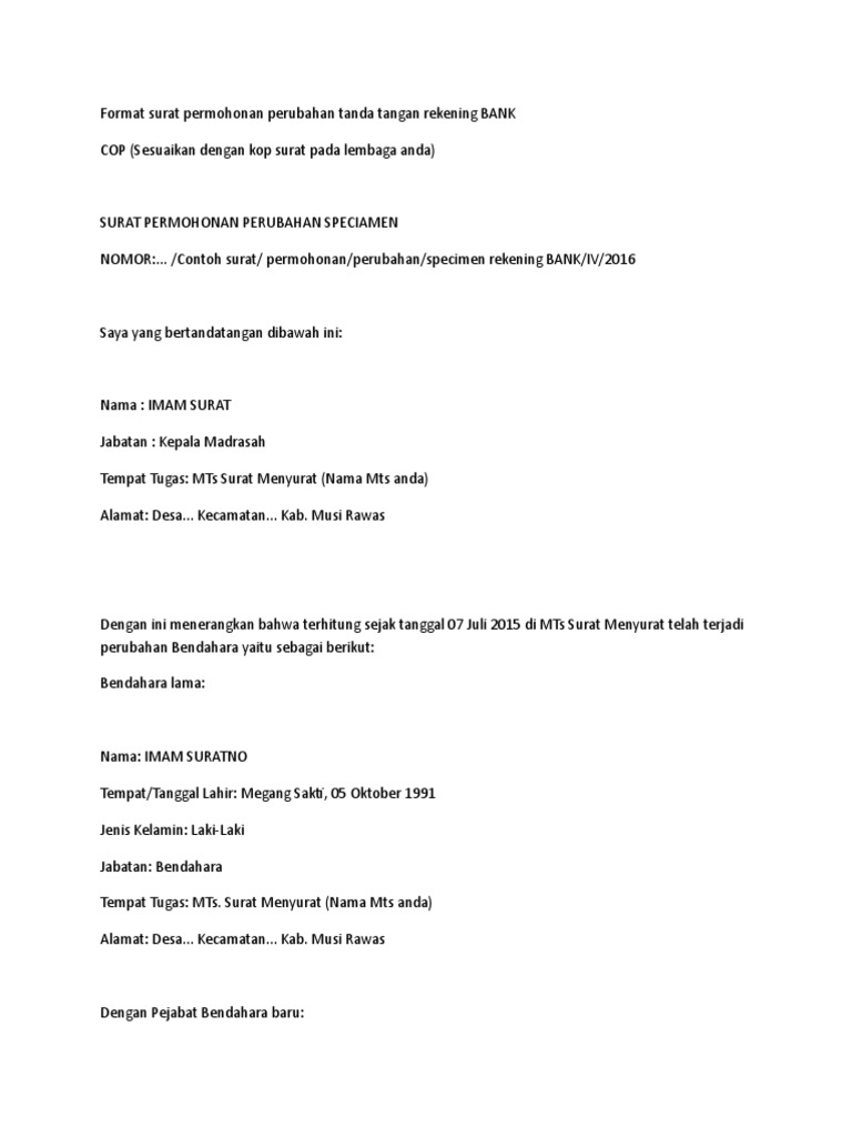 Surat Permohonan Perubahan Specimen Bank 48+ Koleksi Gambar Arti Specimen Bank Sebelumnya, uang pecahan 1.0 ini juga sempat. Saat membuka rekening baru untuk yayasan atau lembaga, bank membutuhkan contoh tanda tangan dari pihak yang berwenang. Perusahaan pencetak uang (banknote printers) memang. Uang specimen disebut juga dengan house note, uang ini di terbitkan oleh bank note printer atau perusahaan pencetak uang. Bank indonesia (bi) dan perusahaan percetakan uang republik indonesia (peruri) merupakan. Arti Specimen Bank.