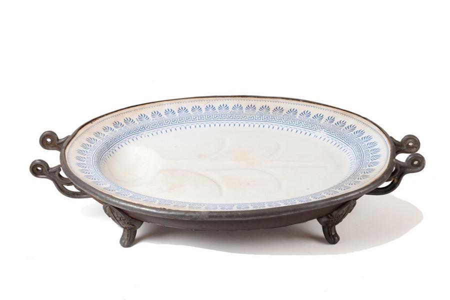 Victorian Greek Revival Meat Platter with Pewter Stand Pewter Metalware