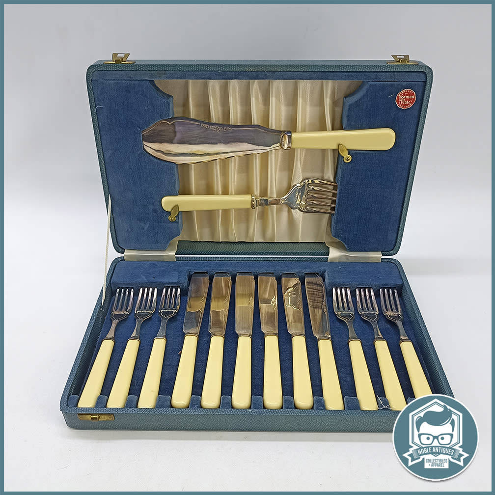 Cutlery Vintage Boxed Bone Handled English Silver Plate Fish Serving
