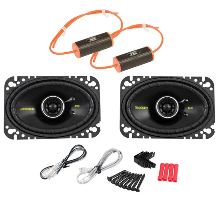 Kicker 46CSC464 4x6" Coaxial Range Stereo Speakers and PAC BB4PR Bass
