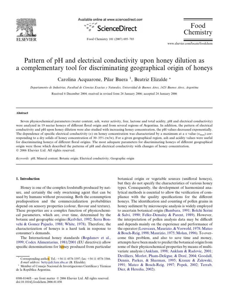 PH Honey Electrical Conductivity PDF PDF Ph Honey